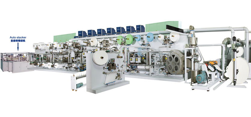 可選性生產工藝配置: 模塊化設計,可被升級,用于 生產長方形式前后耳帶產品 雙棉芯成型機構 蘆薈/香水運用機構 量式高分子下料機構 全伺服堆垛機 攝像質量檢測系統(tǒng) |